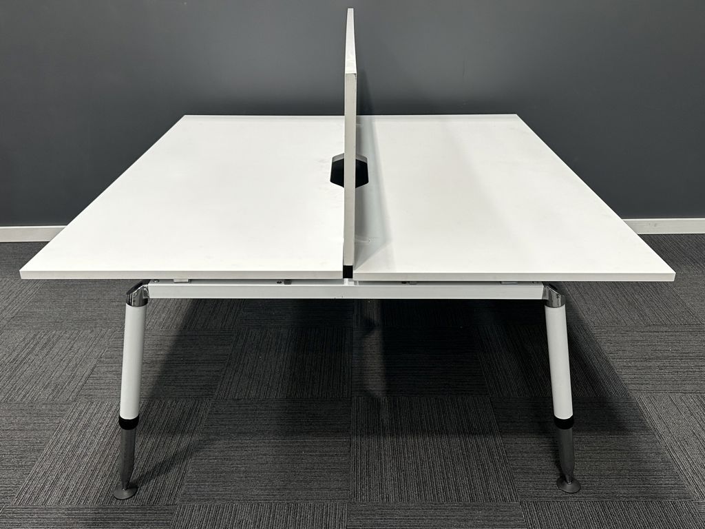 A simple, fixed-height 2-person pod with a clean, minimal aesthetic to suit any office. A pinnable screen adds a small degree of privacy.