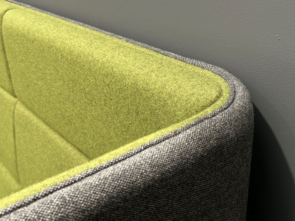 Exterior upholstered in Camira Main Line Flax, col. Temple
