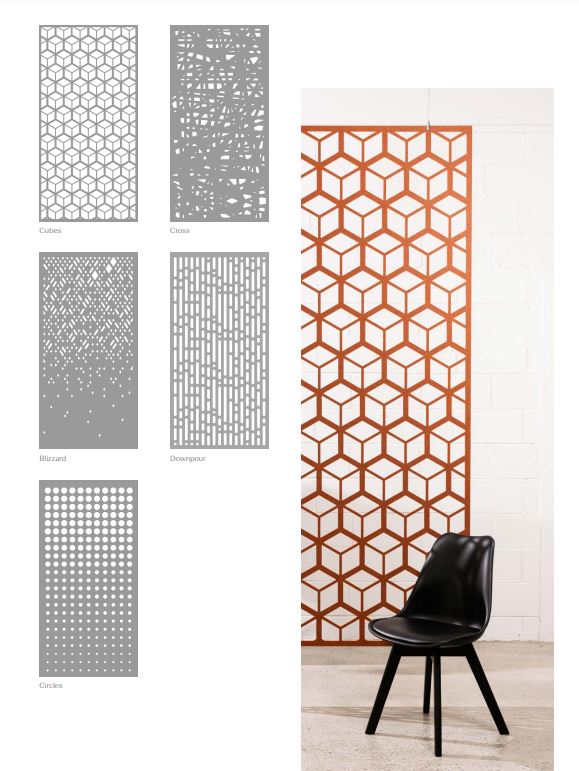 Acoustic space divider offers privacy and sound absorption.