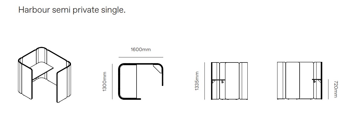 Harbour pods are private areas for busy focus periods at the office. Harbour is a fully modular system which provides a flexible solution for open office zones and can be easily reconfigured into multiple scenarios.